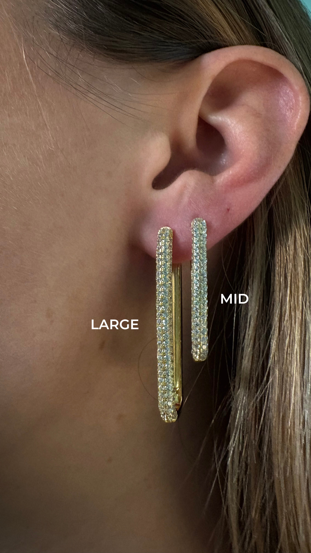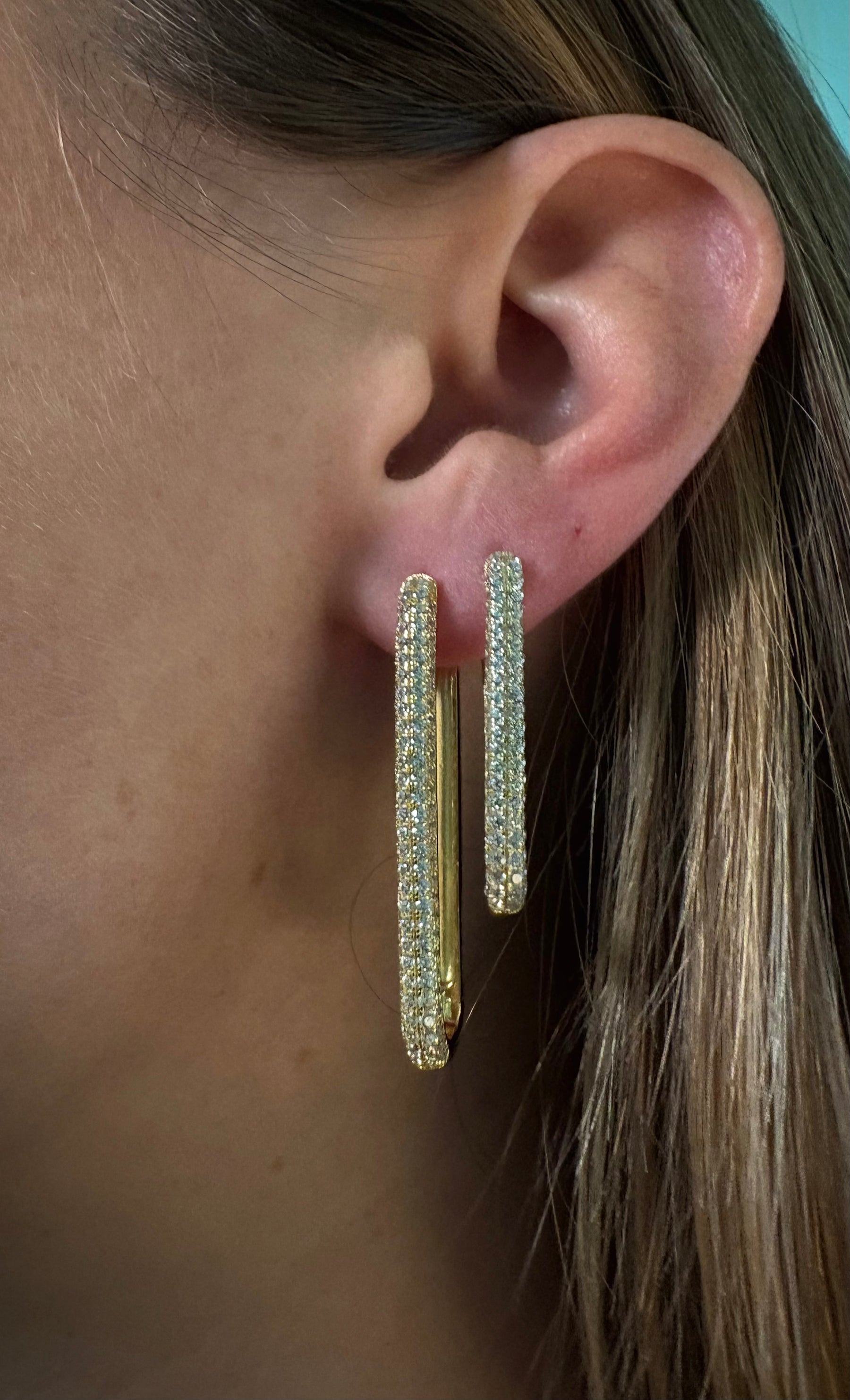 A large thick rectangle with beautiful diamonds. Inspired on the Lola diamond earring but larger. We also have the mid version but for this article we speak about the first one (the large version). Also sold individually so if you want a set you need to but 2 pieces.
