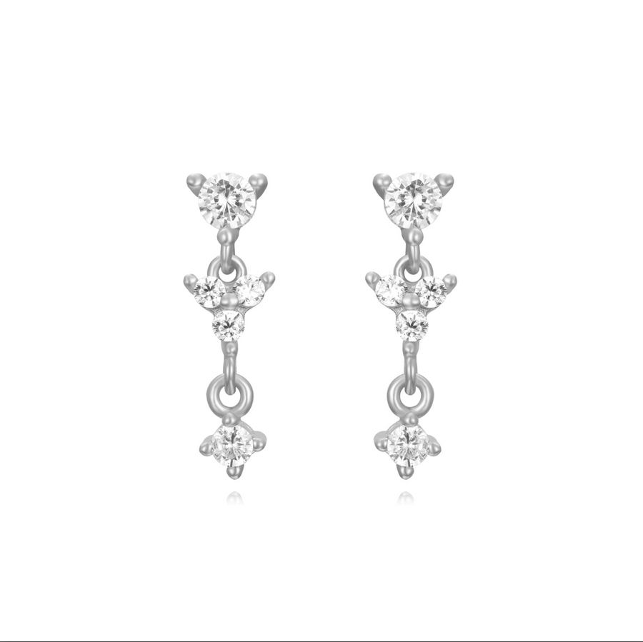 An ear piercer with 3 dangling stones attached. The earring is 14mm long and counts several zirconia stones in white.