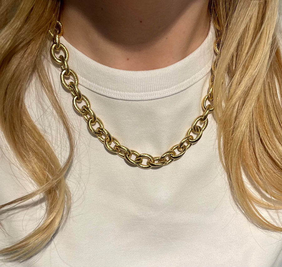 A perfect gold chain necklace, that can be worn alone or with other chains to make it more chunky.