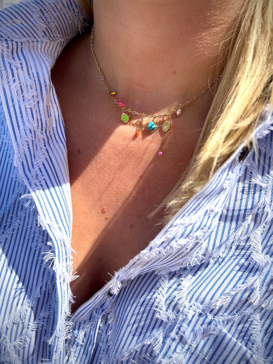 Multi Colour Drop Chain Necklace