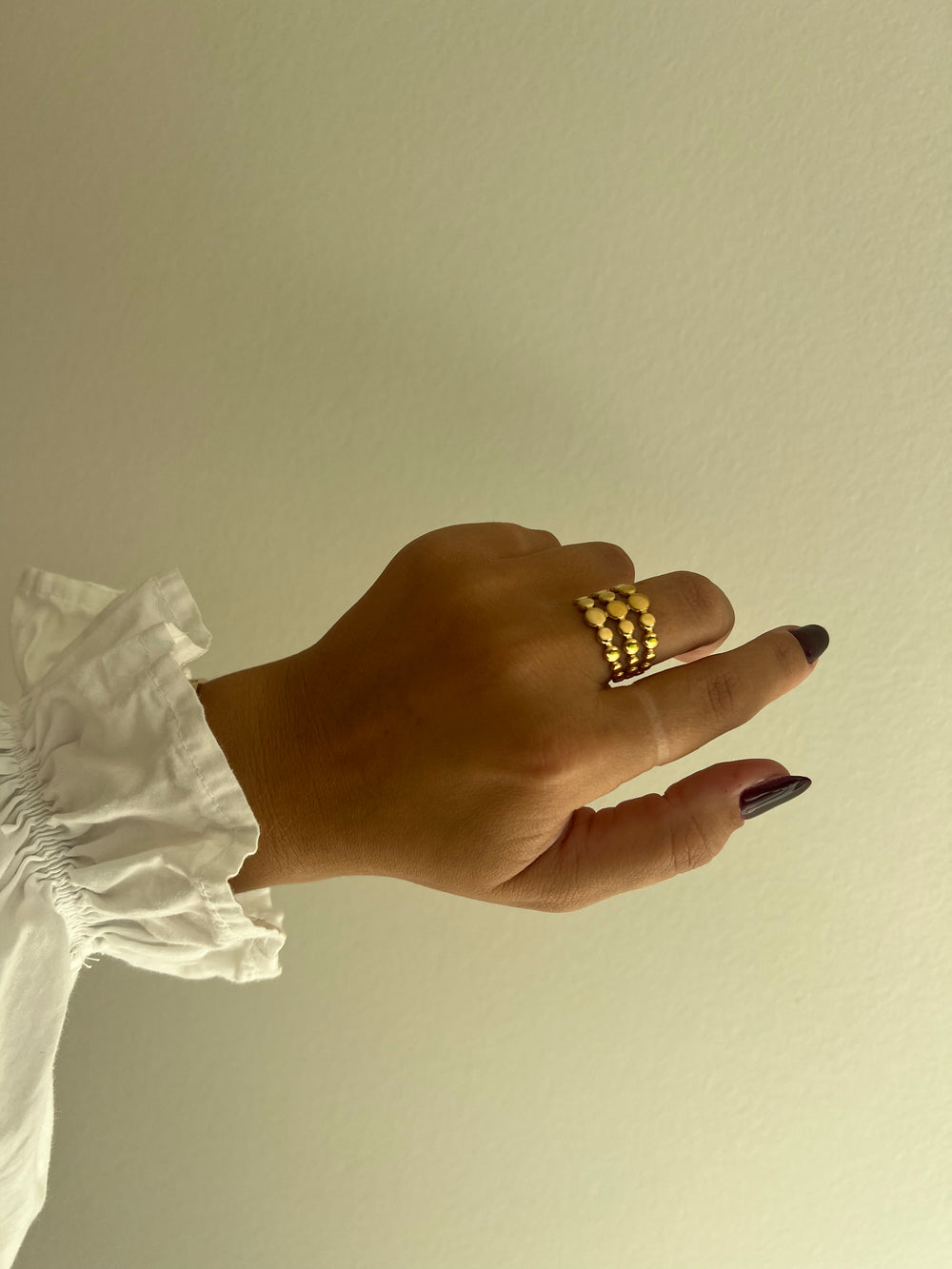 A slightly wider ring with 3 in 1. Is adjustable at the back of the ring.