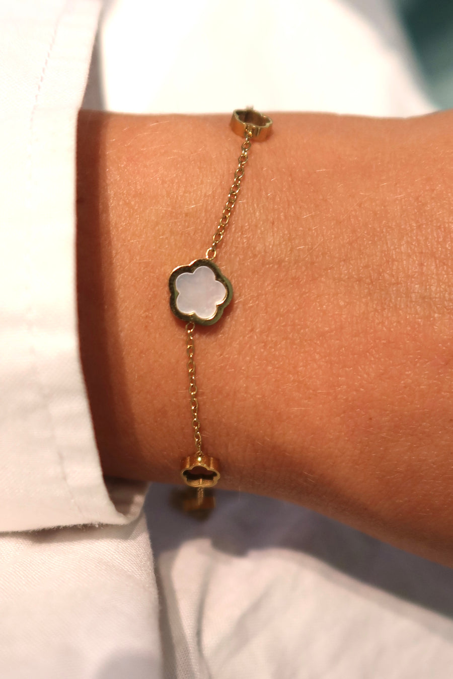 Zachte ivoorkleurige klaverarmband