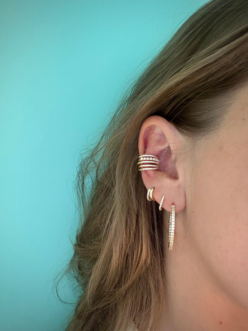 Discover the allure of this stunning gold earcuff adorned with shimmering pearls and sparkling stones. Its unique design features multiple bands that elegantly wrap around your finger, making it a perfect statement piece for any occasion.