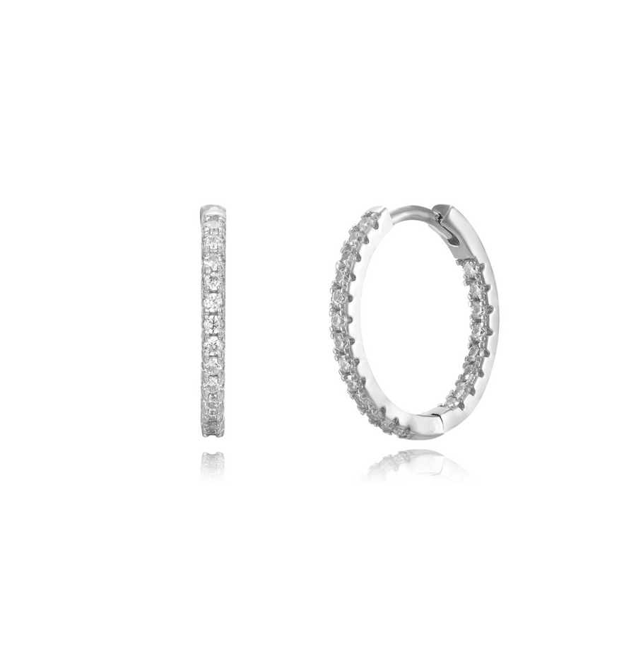 A fine elegant esential hoop with zirconia stones on the inside and outside. This hoop is size one and is 19 mm.
