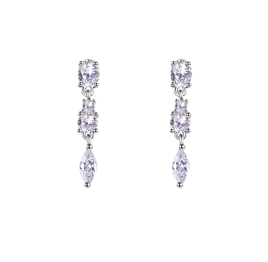 An earstud with 3 zirconia diamonds underneath each other. The earstud is 12 mm in total and the zirconia studs are in between 3,5 and 3 mm.