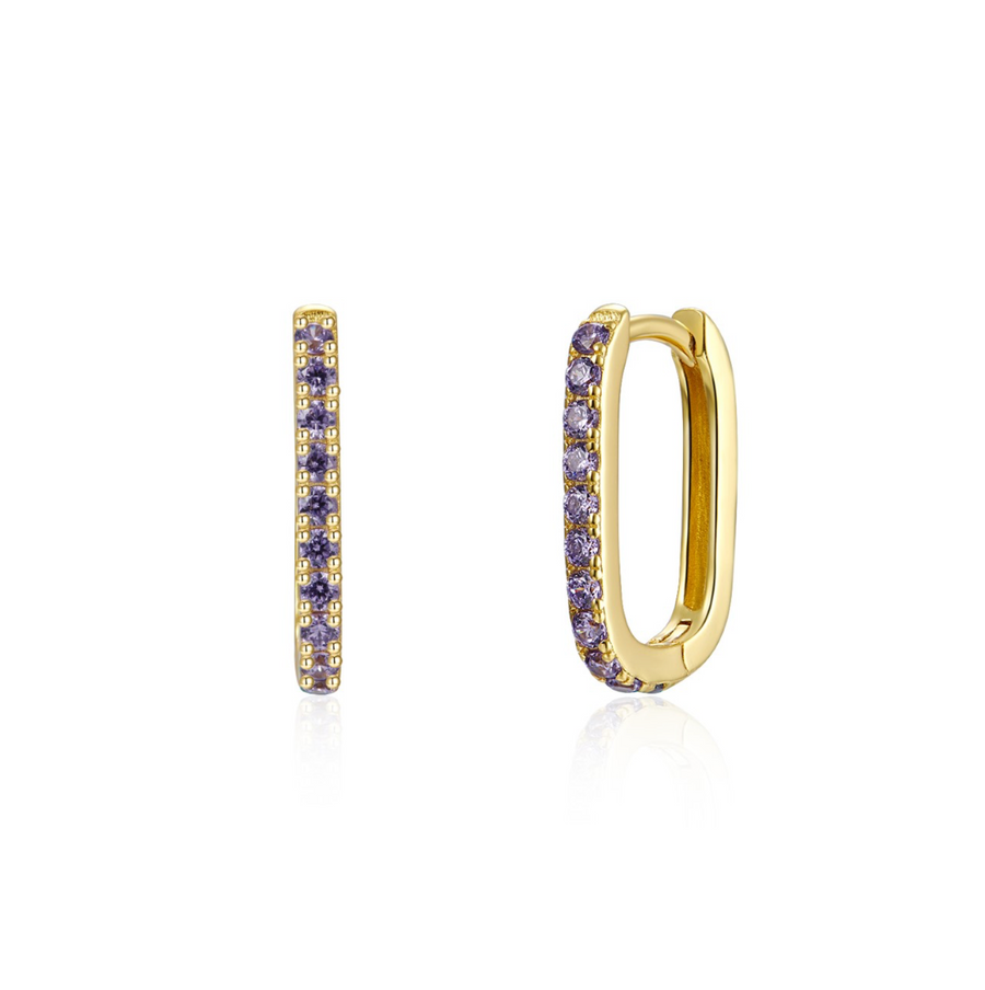 A rectangular earring completely covered in lilac zirconia. The earring is 15 mm long.
